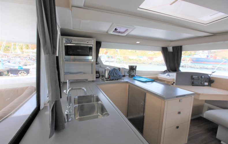 This Fountaine Pajot Helia 44 Evolution is a 2018 model (2017 build) and offers 4 ensuite cabins with electric heads, AC, and a generator. The Helia 44 has been re-launched as the Helia 44 Evolution, with redesigned portholes in the hull to increase natural light, while delivering enhanced views and a stylish aesthetic.